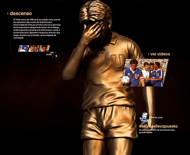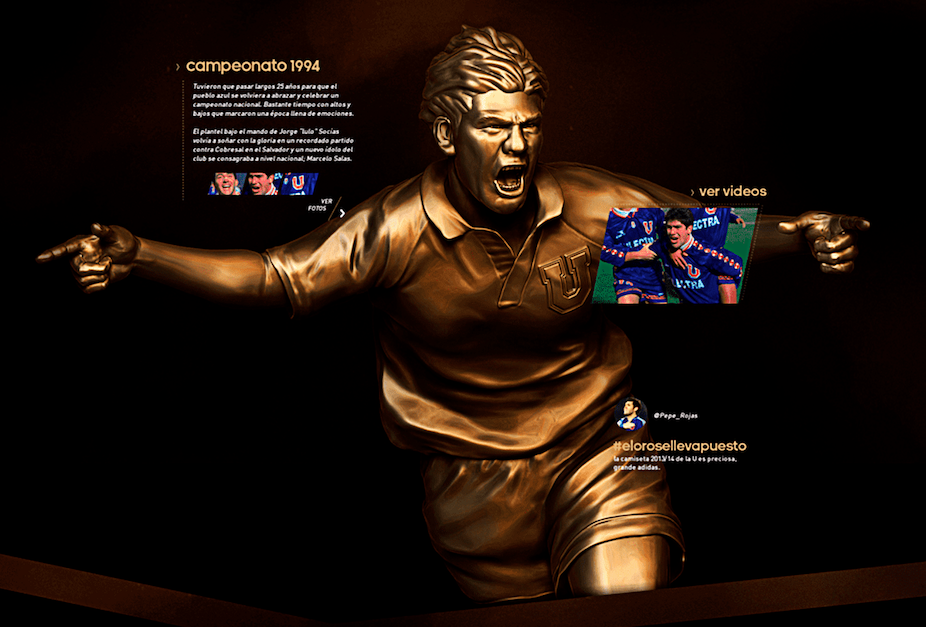 La idea era crear una suerte de “vitrina” con cada uno de los hitos más importantes del club durante toda su trayectoria. Esto respondía 100% a la estrategia comunicacional del lanzamiento de esta versión, bajo el concepto creativo “El oro de la historia se lleva puesto”.