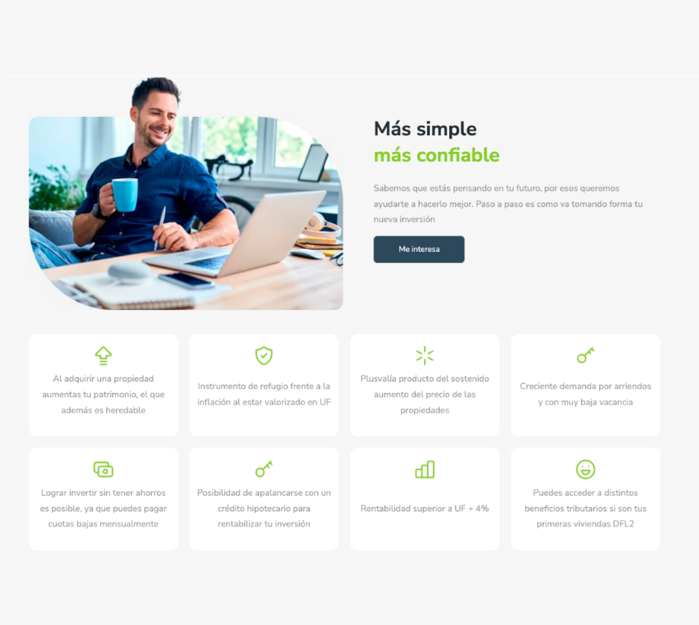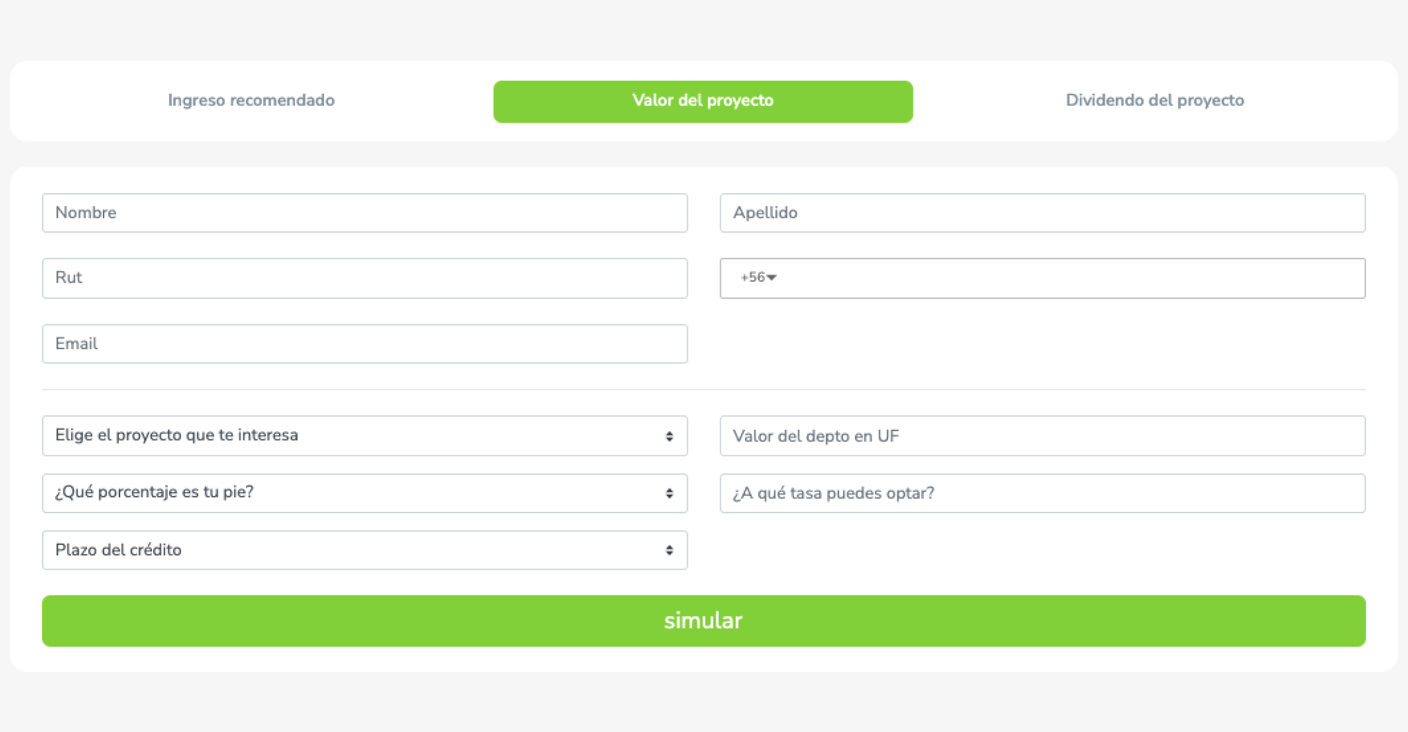 La idea era poder orientar a los usuarios en el cálculo de su próxima inversión. Los temas elegidos fueron ingreso recomendado para optar a algún proyecto, valor del proyecto, y dividendo. Con esta información más clara, cada usuario podía revisar sus opciones y tomar la mejor decisión de compra.