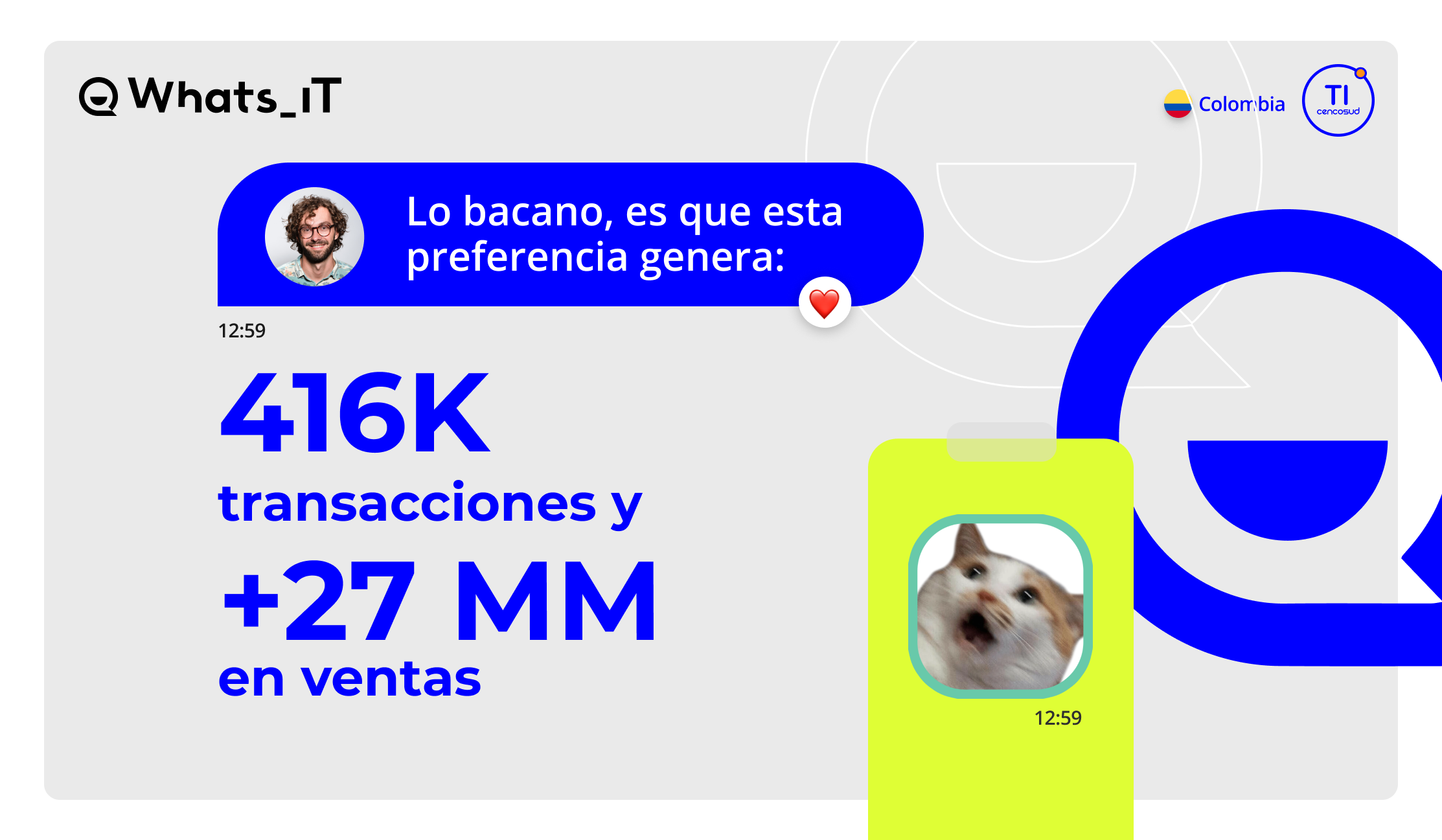 WhatsIT es una manera creativa de comunicar las noticias a nivel regional de todos los avances que se desarrollan en el área de TI Cencosud Colombia.