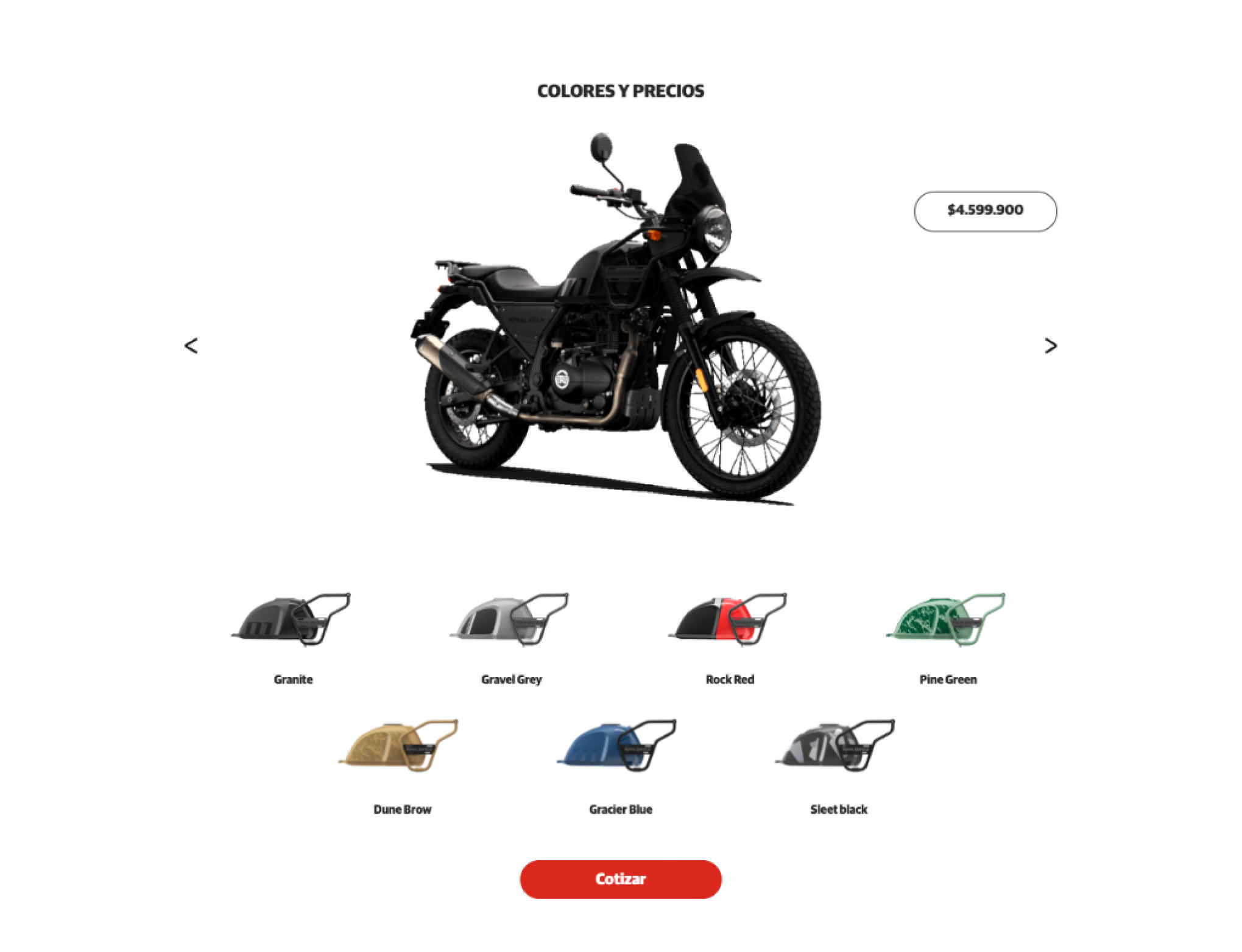 Se sumó una sección con las alternativas de colores de cada modelo, usando solo el detalle del estanque de combustible.