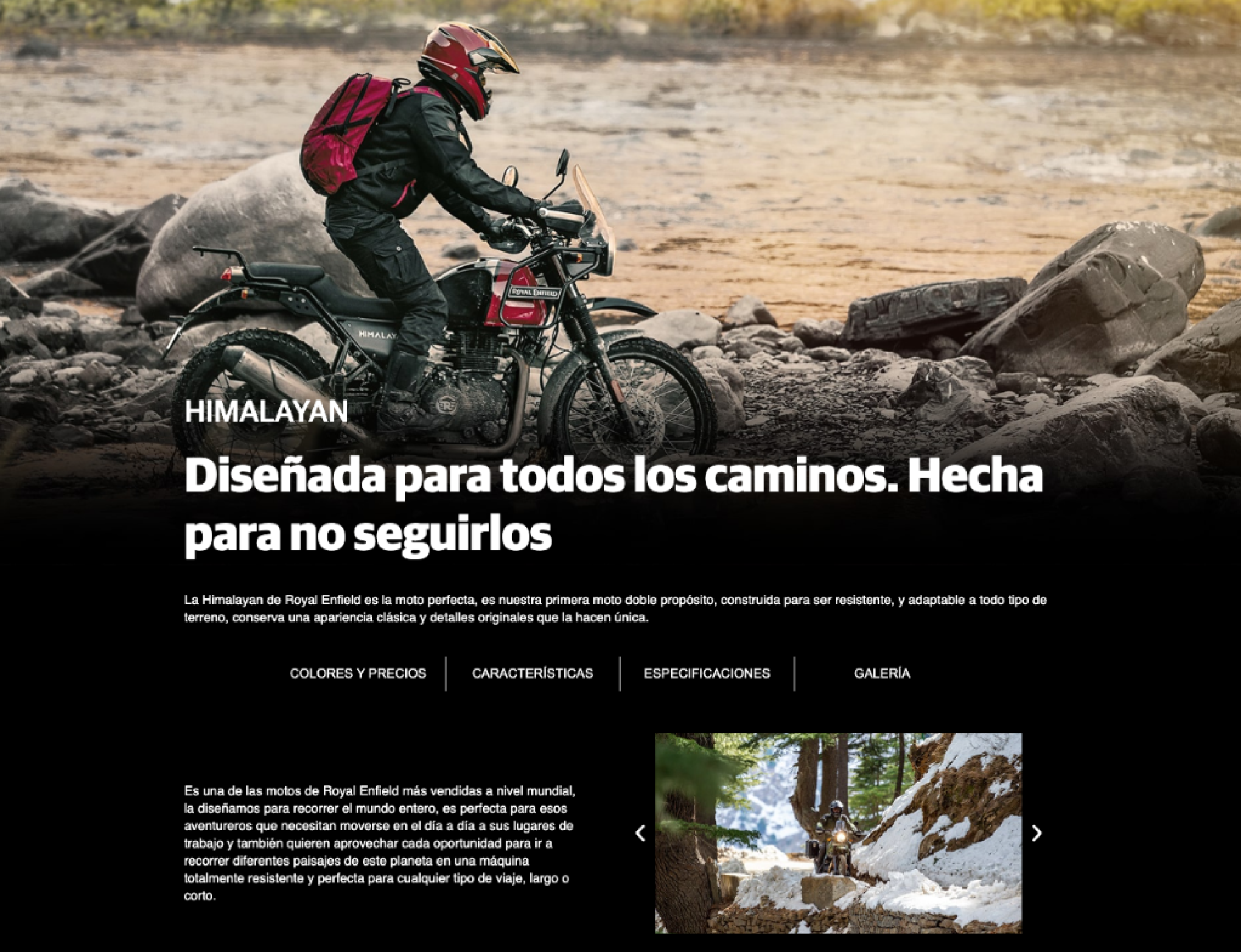 Se propuso una sección de características para cada uno de los modelos, donde desarrollé contenido referente a las especificaciones técnicas de ellos, como el tipo de motor, sistema de frenos, y diversos complementos incluidos.