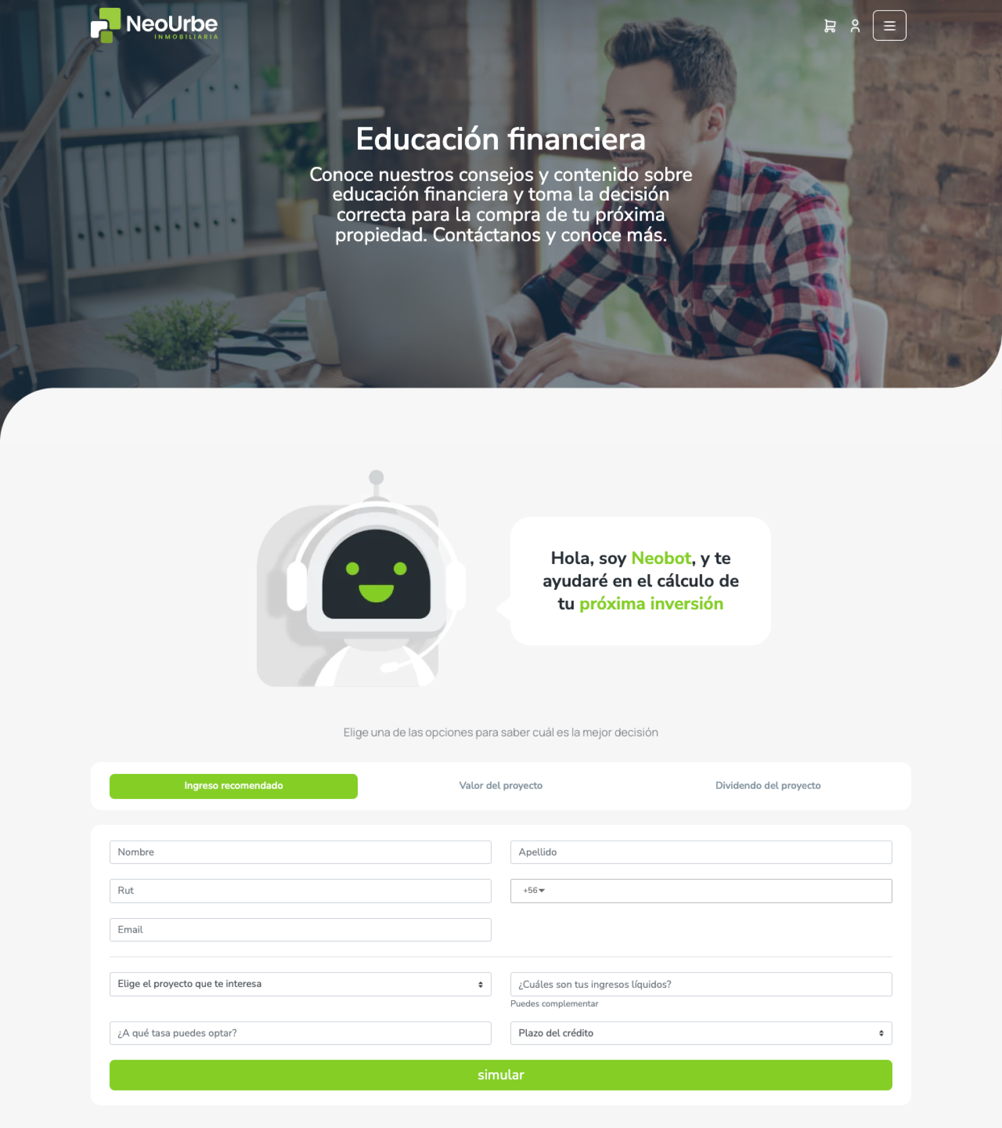 El nuevo contenido para el sitio de inversión de inmobiliaria NeoUrbe debía ser algo más fresco y amigable, respondiendo a una nueva estrategia comunicacional de la marca.